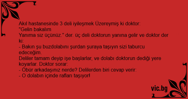 Deliler tamam deyip işe başlarlar, ve dolabı doktorun dediği yere koyarlar. Doktor sorar: