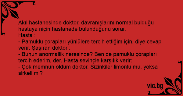 - Bunun anormallik neresinde? Ben de pamuklu çorapları tercih ederim, der. Hasta sevinçle karşılık verir: