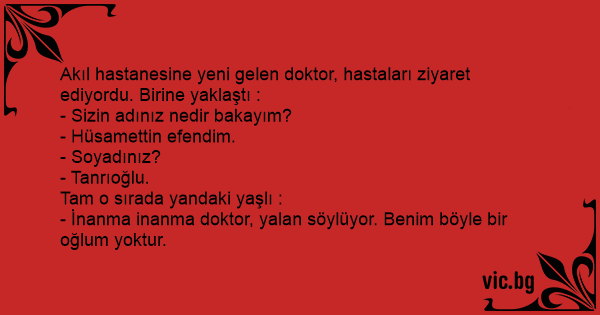 Akıl hastanesine yeni gelen doktor, hastaları ziyaret ediyordu. Birine yaklaştı :