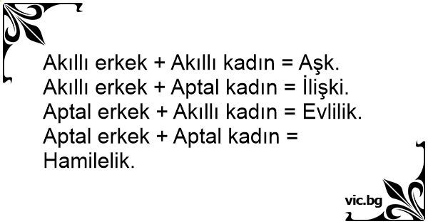 Akıllı erkek + Akıllı kadın = Aşk.