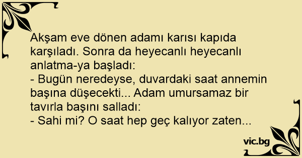 Akşam eve dönen adamı karısı kapıda karşıladı. Sonra da heyecanlı heyecanlı anlatma-ya başladı:
