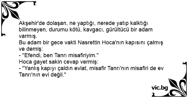 - "Yanlış kapıyı çaldın evlat, misafir Tanrı'nın misafiri de ev Tanrı'nın evi değil."