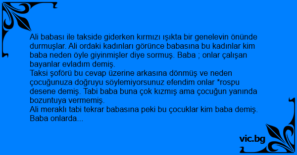 Ali meraklı tabi tekrar babasına peki bu çocuklar kim baba demiş. Baba onlarda onların evlatları oğlum demiş. Taksici yine arkasını dönerek olmadı ama beyefendi neden onlar *rospu çocukları demiyorsunuz demiş.