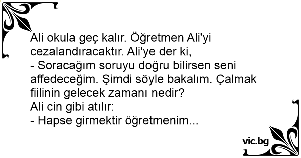Ali okula geç kalır. Öğretmen Ali'yi cezalandıracaktır. Ali'ye der ki,