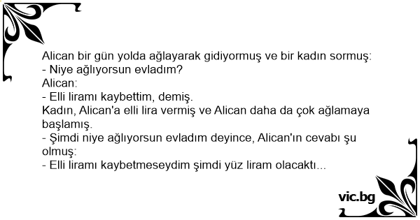 Alican bir gün yolda ağlayarak gidiyormuş ve bir kadın sormuş: