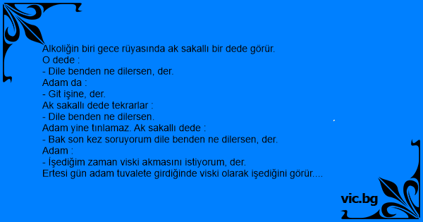 Alkoliğin biri gece rüyasında ak sakallı bir dede görür.