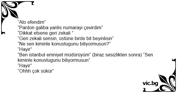 “Ben istanbul emniyet müdürüyüm” (biraz sesizlikten sonra) “Sen kiminle konustugunu biliyormusun”