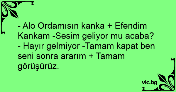 - Alo Ordamısın kanka + Efendim Kankam -Sesim geliyor mu acaba?