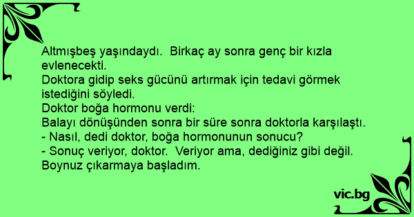 - Nasıl, dedi doktor, boğa hormonunun sonucu?