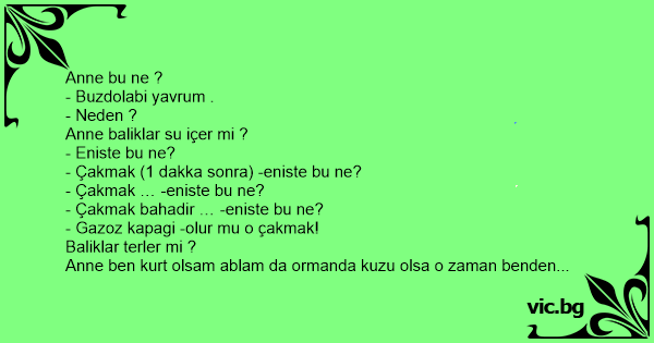 - Olmazsin kizim -peki kedi benim yemegimi yerse insan olur mu anne?