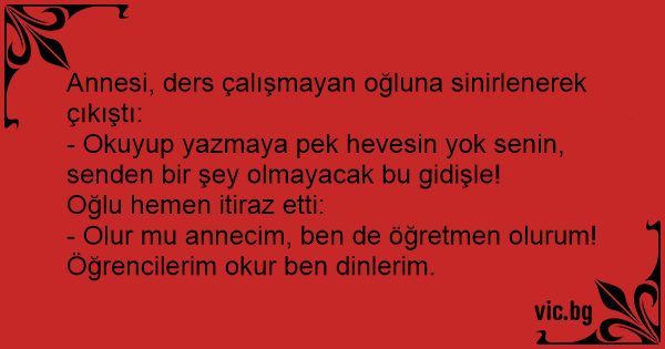 - Olur mu annecim, ben de öğretmen olurum! Öğrencilerim okur ben dinlerim.