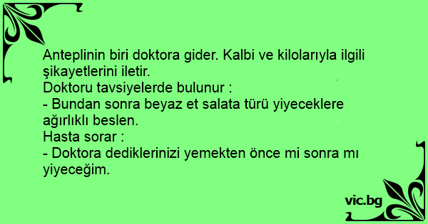 Anteplinin biri doktora gider. Kalbi ve kilolarıyla ilgili şikayetlerini iletir.