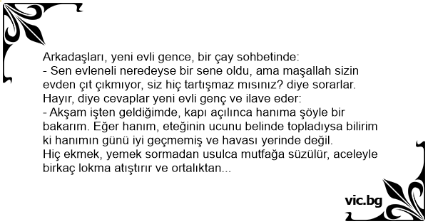 Arkadaşları, yeni evli gence, bir çay sohbetinde: