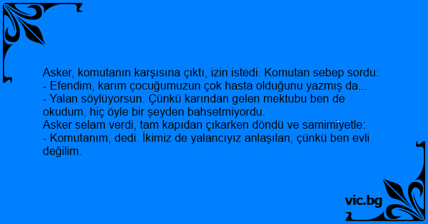 Asker, komutanın karşısına çıktı, izin istedi. Komutan sebep sordu: