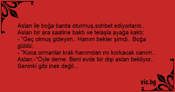 Aslan ile boğa barda oturmuş,sohbet ediyorlardı..
