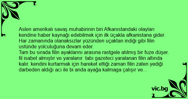 Tam bu sırada filin ayaklarını arasına rastgele atılmış bir fuze düşer. fil isabet almıştır ve yaralanır. tabı gazeteci yaralanan filin altında kalır. kendini kurtarmak için hareket ettiği zaman filin zaten yediği darbeden aldığı acı ile bi anda ayağa kalmaga çalışır ve gazetecinin penisi ezilir.