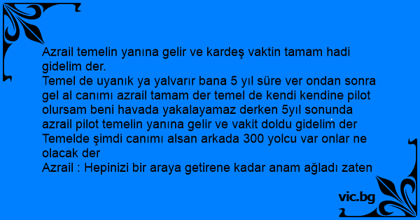 Azrail temelin yanına gelir ve kardeş vaktin tamam hadi gidelim der.