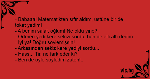 - Babaaa! Matematikten sıfır aldım, üstüne bir de tokat yedim!