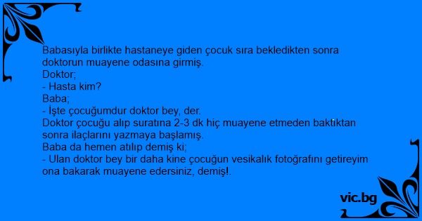 - Ulan doktor bey bir daha kine çocuğun vesikalık fotoğrafını getireyim ona bakarak muayene edersiniz, demiş!.