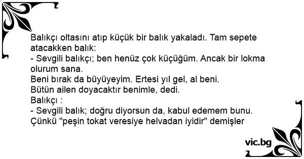 Balıkçı oltasını atıp küçük bir balık yakaladı. Tam sepete atacakken balık: