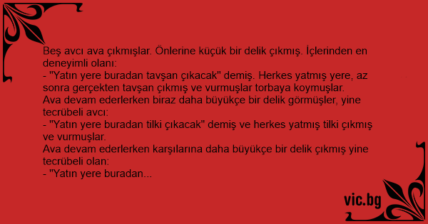 Beş avcı ava çıkmışlar. Önlerine küçük bir delik çıkmış. İçlerinden en deneyimli olanı: