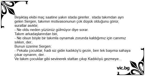 - Pekala çocuklar, hadi siz gidin kadıköy'ü gezin, ben tek başıma sahaya çıkar oynarım, der..