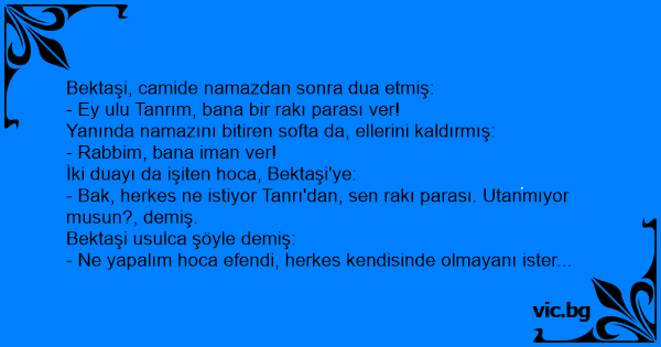 - Bak, herkes ne istiyor Tanrı'dan, sen rakı parası. Utanmıyor musun?, demiş.
