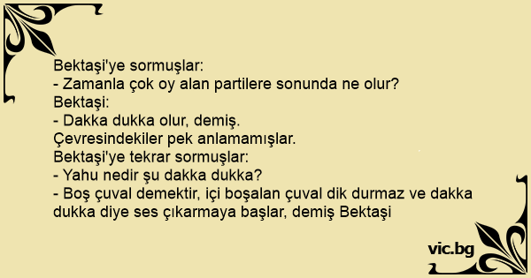 - Boş çuval demektir, içi boşalan çuval dik durmaz ve dakka dukka diye ses çıkarmaya başlar, demiş Bektaşi