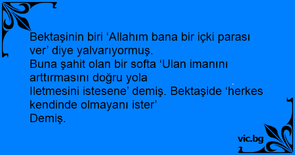 Bektaşinin biri ‘Allahım bana bir içki parası ver’ diye yalvarıyormuş.
