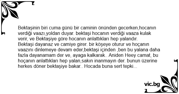 Gel zaman giт zaman , yine bir cuma günü Bektaşi yine aynı camiinin önünden gecer. Ve aynı hoça gene vaaz verir ve Bektaşi gene dayanamaz ve içeriye girer.