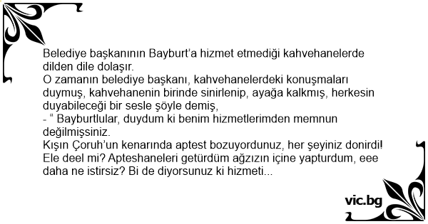 O zamanın belediye başkanı, kahvehanelerdeki konuşmaları duymuş, kahvehanenin birinde sinirlenip, ayağa kalkmış, herkesin duyabileceği bir sesle şöyle demiş,