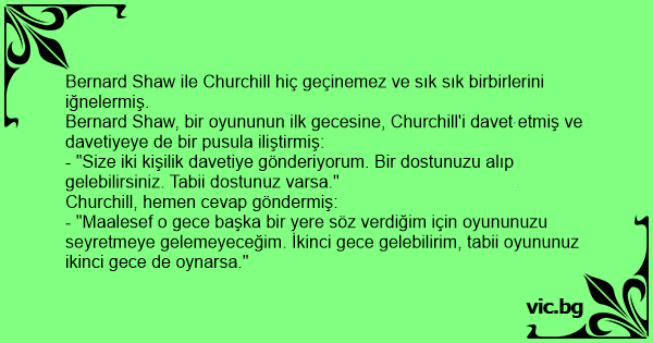 Bernard Shaw, bir oyununun ilk gecesine, Churchill'i davet etmiş ve davetiyeye de bir pusula iliştirmiş: