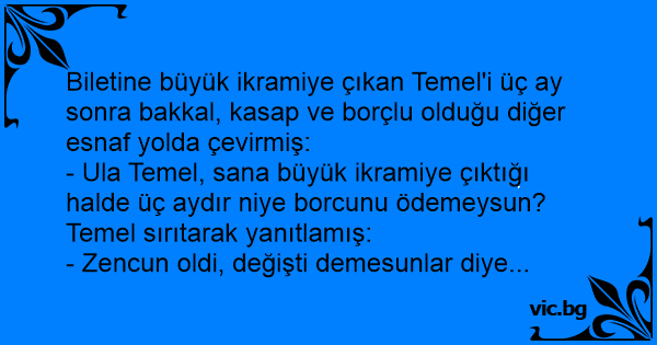 - Ula Temel, sana büyük ikramiye çıktığı halde üç aydır niye borcunu ödemeysun?