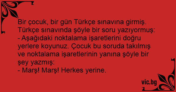 Bir çocuk, bir gün Türkçe sınavına girmiş. Türkçe sınavında şöyle bir soru yazıyormuş: