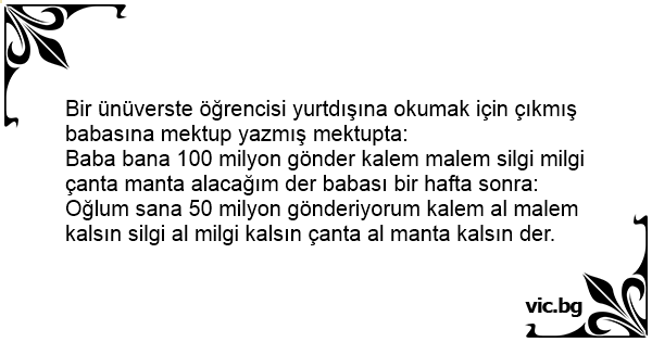 Baba bana 100 milyon gönder kalem malem silgi milgi çanta manta alacağım der babası bir hafta sonra:
