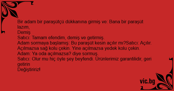 Bir adam bir paraşütçü dükkanına girmiş ve: Bana bir paraşüt lazım,