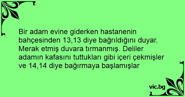 Bir adam evine giderken hastanenin bahçesinden 13,13 diye bağrıldığını duyar.