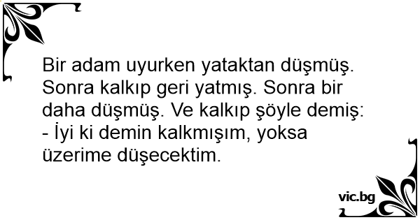 Bir adam uyurken yataktan düşmüş. Sonra kalkıp geri yatmış. Sonra bir daha düşmüş. Ve kalkıp şöyle demiş: