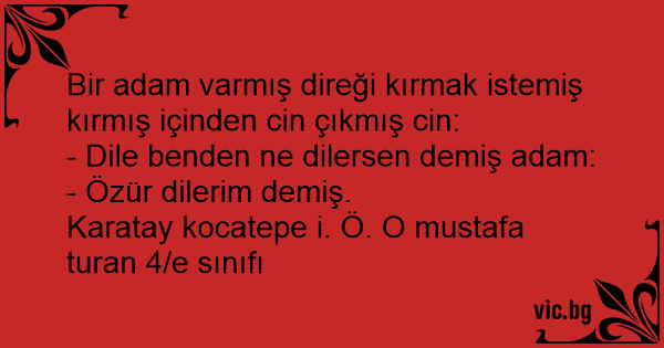 Bir adam varmış direği kırmak istemiş kırmış içinden cin çıkmış cin: