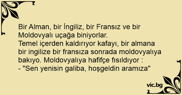 Bir Alman, bir İngiliz, bir Fransız ve bir Moldovyalı uçağa biniyorlar.