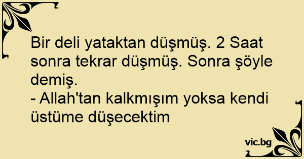 Bir deli yataktan düşmüş. 2 Saat sonra tekrar düşmüş. Sonra şöyle demiş.