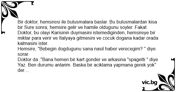 Doktor da ;"Bana hemen bir kart gonder ve arkasina "spagetti " diye Yaz. Ben durumu anlarim. Baska bir aciklama yapmana gerek yok" der.