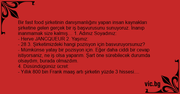 Bir fast food şirketinin danışmanlığını yapan insan kaynakları şirketine gelen gerçek bir iş başvurusunu sunuyoruz. İnanıp inanmamak size kalmış… 1. Adınız Soyadınız: