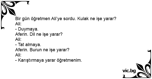 Bir gün öğretmen Ali’ye sordu. Kulak ne işe yarar?