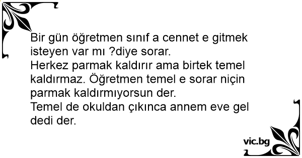 Herkez parmak kaldırır ama birtek temel kaldırmaz. Öğretmen temel e sorar niçin parmak kaldırmıyorsun der.