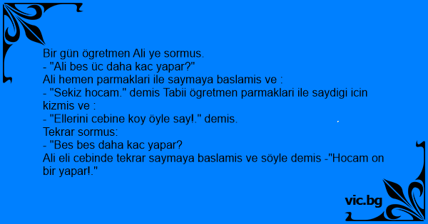 - "Sekiz hocam." demis Tabii ögretmen parmaklari ile saydigi icin kizmis ve :