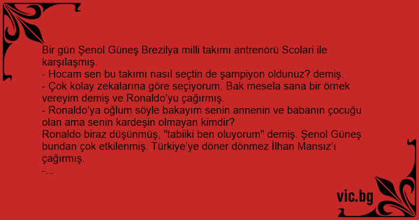 - Çok kolay zekalarına göre seçiyorum. Bak mesela sana bir örnek vereyim demiş ve Ronaldo’yu çağırmış.