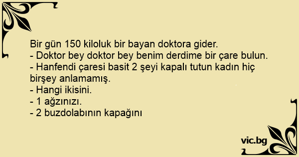 Bir gün 150 kiloluk bir bayan doktora gider.