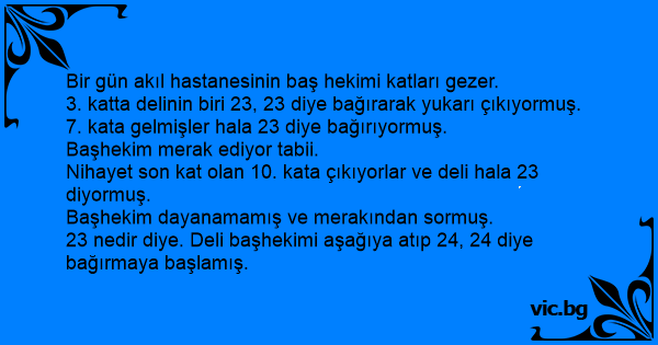 23 nedir diye. Deli başhekimi aşağıya atıp 24, 24 diye bağırmaya başlamış.