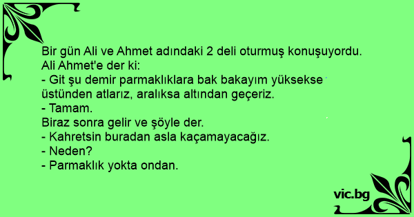 Bir gün Ali ve Ahmet adındaki 2 deli oturmuş konuşuyordu.
